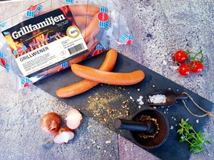 Gris- & nötkött 66%, vatten, fett fläsk, potatismjöl, socker, koksalt, kryddor ( lök, vitpeppar, paprika...) antioxidationsmedel (askorbinsyra, kaliumlaktat), rökarom, konserveringsmedel natriumnitrit.
