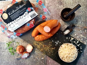 kryddor (vitpeppar, lök, ...), socker, fett fläsk,